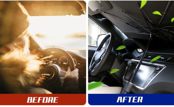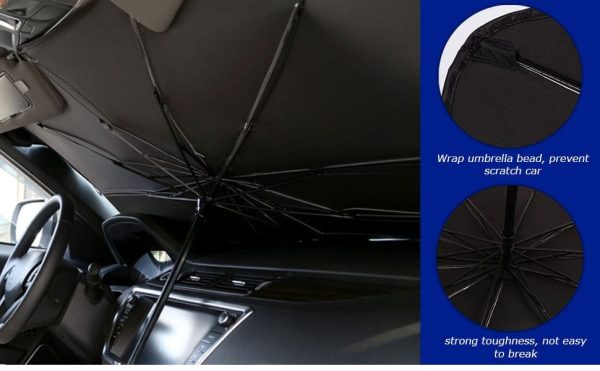 - “Ensure maximum interior protection from the sun with our foldable, UV reflective windshield sunshade umbrella.”