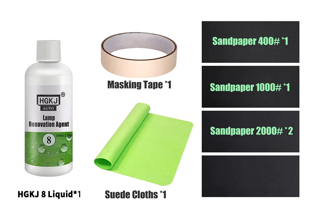 HGKJ 8 Car Headlight Polishing Head Lamp Polish Restoration Renovation Kit
